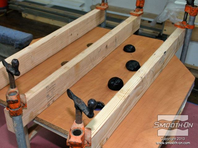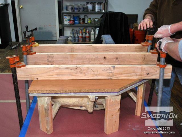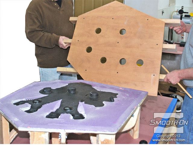 מחזיקים את הקרש התומך בעזרת מלחציים. הלחץ הנגדי שהקרש ייצור ישפר את הפרטים על פני השטח של היציקה.