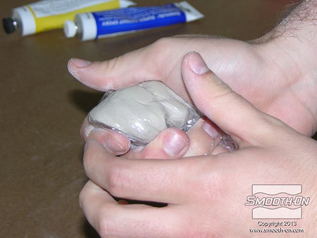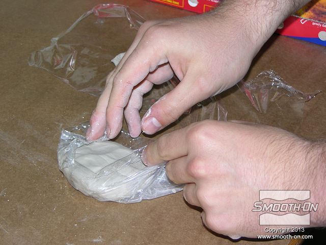 השלב הראשון בהכנת סתימות הדבק הוא להכין בסיס עליו יהיה אפשר למרוח את דבק האפוקסי. כדי להכין את הבסיס לוקחים חתיכת חימר (על בסיס מים) ועוטפים אותה בחוזקה בפלסטיק נצמד.