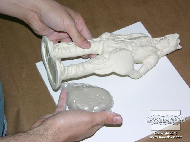 במקרה זה, המודל המקורי הוא דמות בגובה 30cm העשוי מחומר קרמי ללא גלזורה. הבעיה ביצירת תבנית ממודל זה היא שני החללים ש"עוברים" דרך המודל.