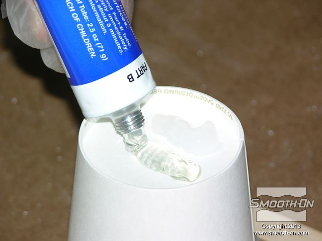 משתמשים בגומי סיליקון לתבניות SORTA-Clear® 40. יחס הערבוב של החומר הוא 100A:10B לפי משקל. בעזרת משקל גרמים מדוייק, מודדים את הבסיס (Part A).