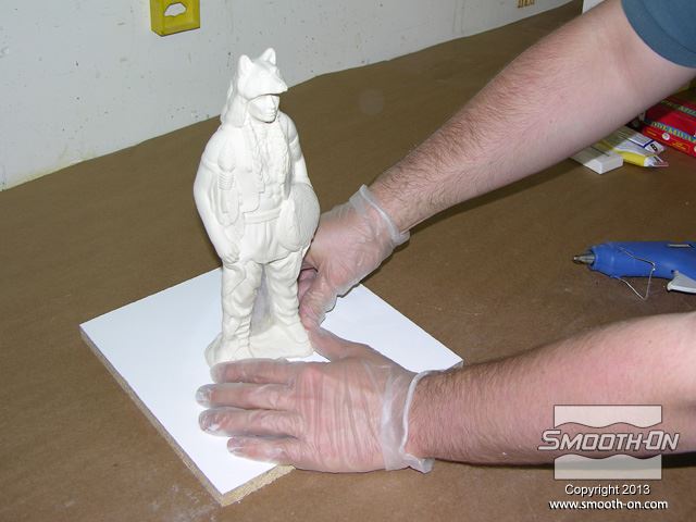 ממשיכים לשפוך את ה סיליקון SORTA-Clear® 40 עד שראש המודל מכוסה בלפחות 1.25 ס"מ של גומי. מניחים לסיליקון SORTA-Clear® 40 להתמצק לחלוטין (16 שעות) לפני שחולצים את המודל.