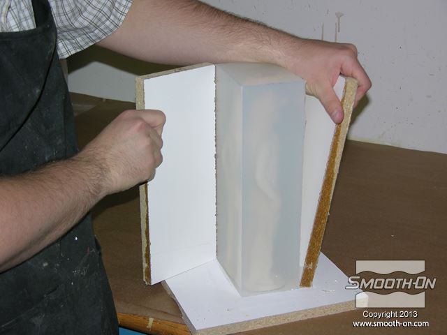 לאחר שהסיליקון התמצק, מפרקים את קופסת התבנית.