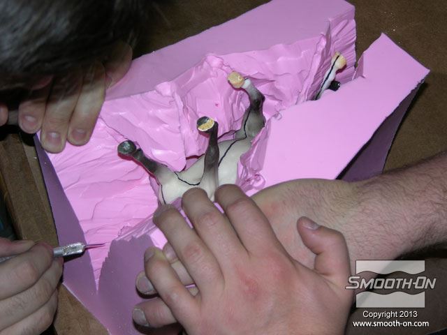 ממשיכים לחתוך את תבנית הסיליקון Mold Max® 30 בעזרת קווי הסימון על התבנית ועל המודל.