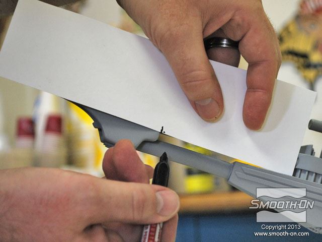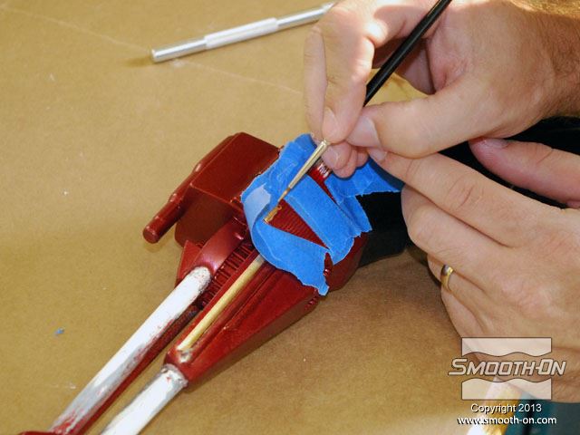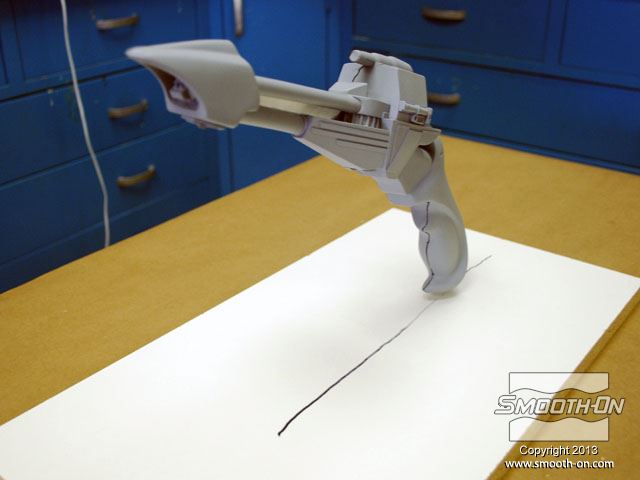 סיליקון ליציקה Mold Max 15T זורם על האקדח ומכסה אותו.