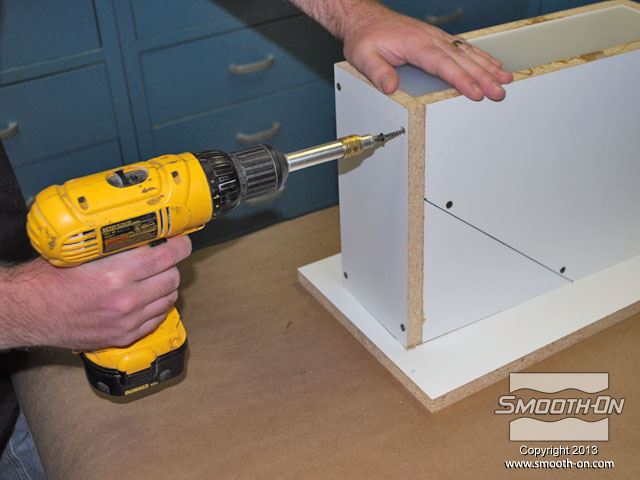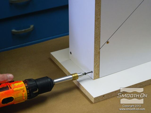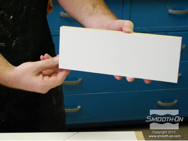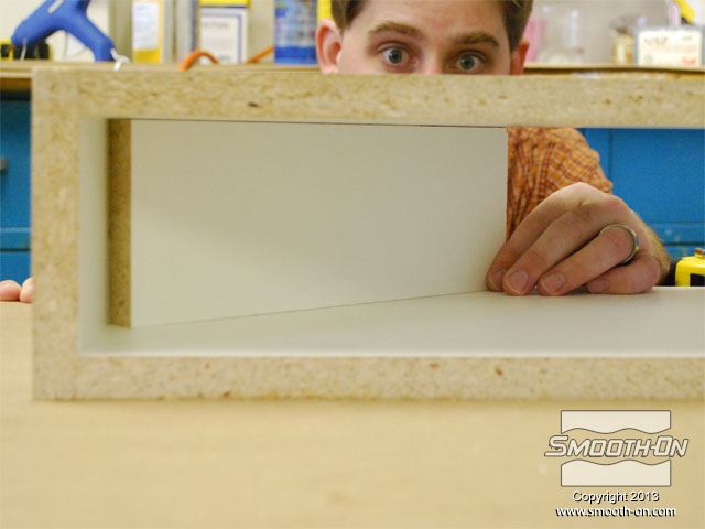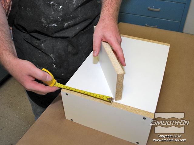חותכים לוח אחד לגודל המתאים בכדי להשתמש בו כ "דמה". תפקידו של לוח זה הוא להקטין את חלל הקופסת התבנית וכך לצמצם את כמות הסיליקון ליציקה שתשמש להכנת התבנית (תמונות בהמשך).