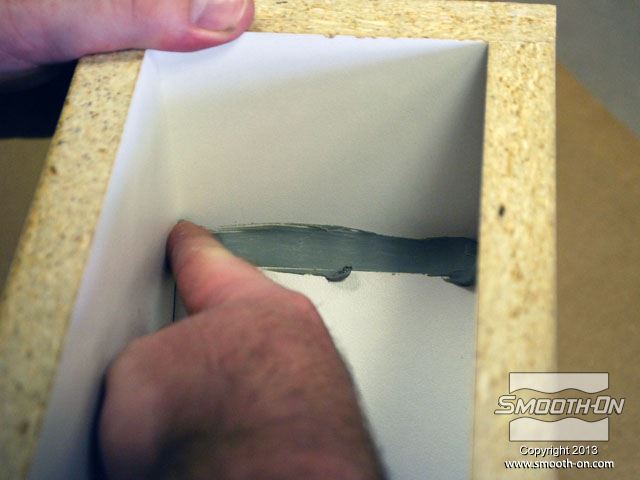 אוטמים את המרווחים (ה"תפרים") הקיימים בקופסת התבנית בעזרת חימר לעיצוב נטול-גופרית על בסיס שמן LBT.