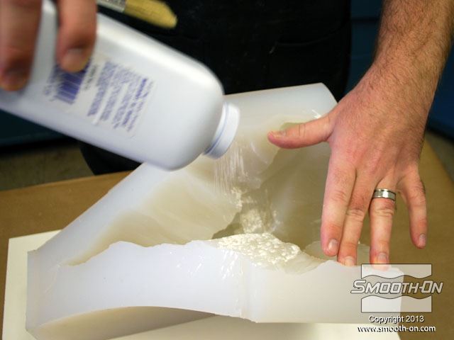 מפזרים מעט טלק על פני התבנית כדי לצמצם התפתחות של בועות על פני השטח.