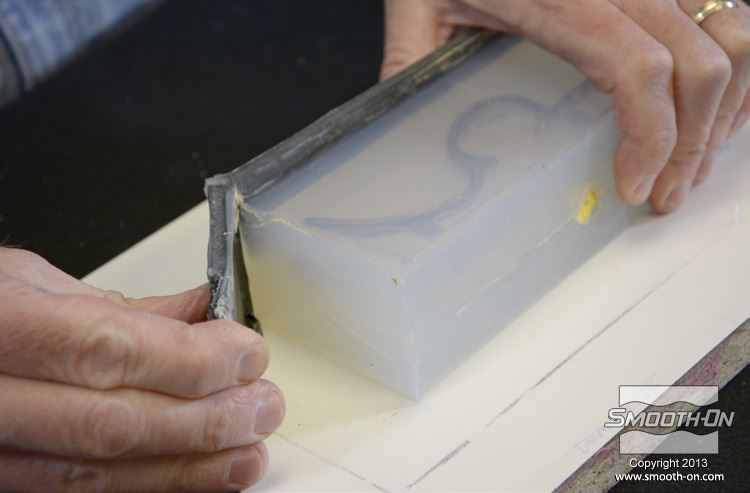 לחיצה להגדלת תמונה לאחר שהסיליקון SORTA-Clear® 37 מתמצק, מסירים את מסגרת התבנית. לאחר שהסיליקון SORTA-Clear® 37 מתמצק, מסירים את מסגרת התבנית.