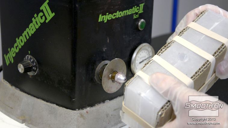 לחיצה להגדלת תמונה מזריקים את השעווה לתבנית. ניתן לראות את השעווה דרך התבנית סיליקון שקוף למחצה SORTA-Clear® 37. מזריקים את השעווה לתבנית. ניתן לראות את השעווה דרך התבנית סיליקון שקוף למחצה SORTA-Clear® 37.