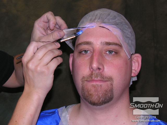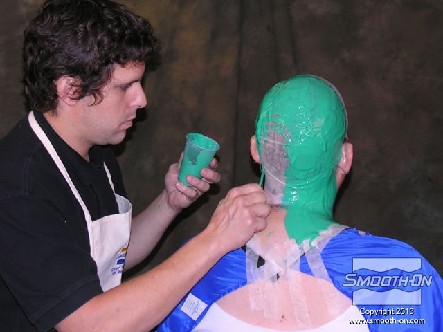 מורחים שכבה של סיליקון Body Double FAST SET על אחורי ראש המודל.