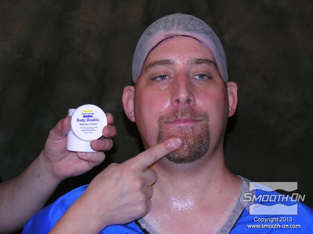 מורחים את עור המודל הגלוי במשחת הפרדה Body Double release cream. המשחה תחזיק את השערות בצמוד לעור כך שלא יעטפו ע"י הסיליקון.