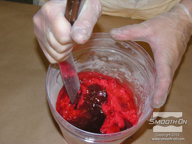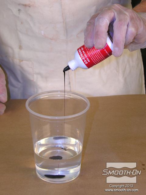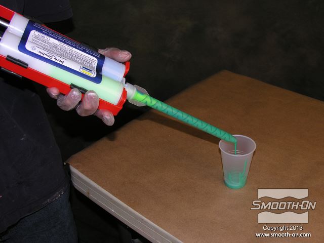 מזריקים את הסיליקון לכוס כדי לאפשר מריחה נוחה על פני המודל.