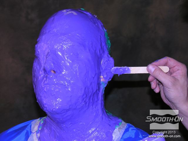 מערבבים סיליקון Body Double STANDARD SET עם מסמיך לסיליקון Thi-Vex® II ומורחים שכבה נוספת על הפנים. מטרתה של שכבה זו היא לתת עובי במהירות לתבנית ולמלא חללים בתבנית (אוזנים).