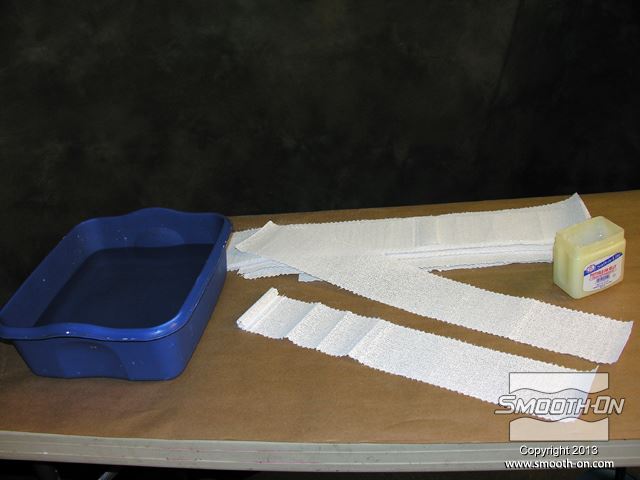 מעיל התמיכה (גיבוי) יוכן מתחבושות גבס חתוכות מראש.
