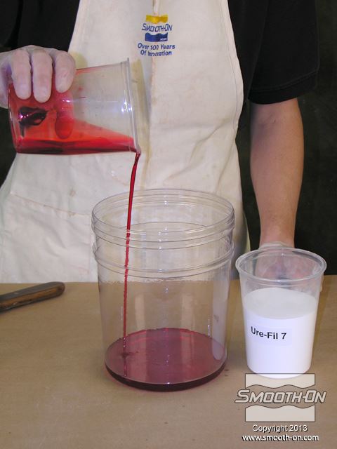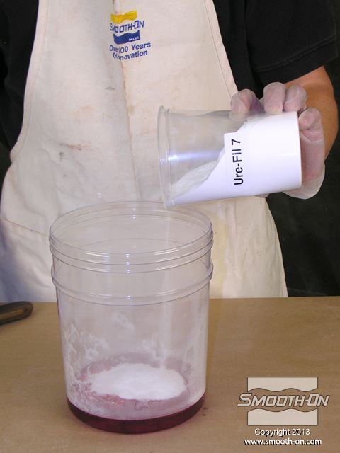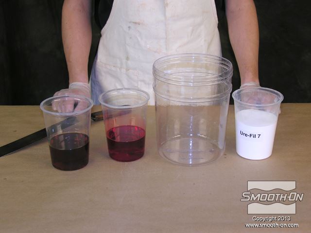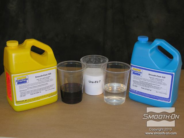 היציקה: משתמשים בפוליאוריתן Smooth-Cast® 320 מעורבב עם מלאן (פילר) Ure-fil® 7 ביחס ערבוב 1 חלק A ל1חלק B ל2 חלקים Ure-fil® 7, לפי נפח.