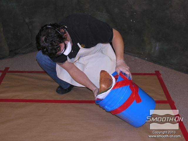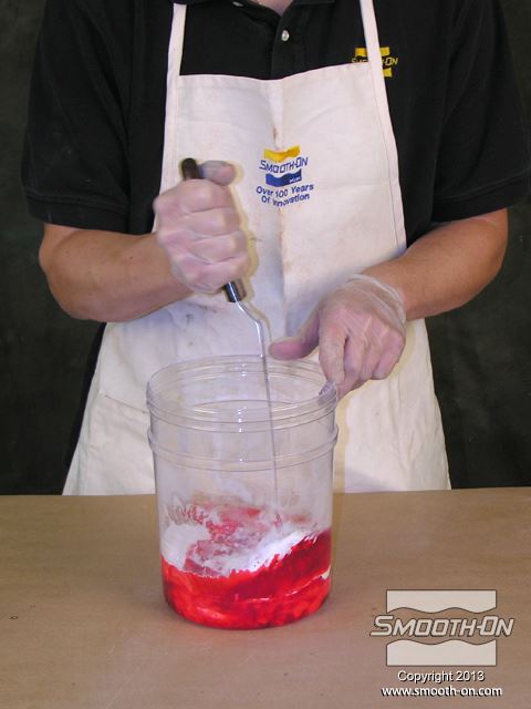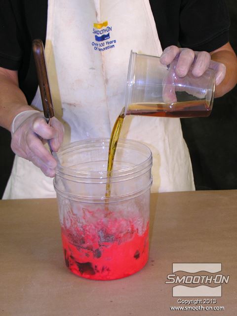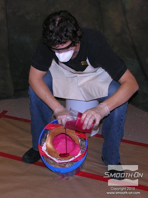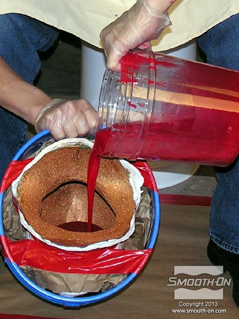 עבור היציקה משתמשים בפוליאוריתן מוקצף וקשיח Foam-iT!® 5 . שמים חומר גוון, מערבבים ושופכים את החומר לחלל התבנית.