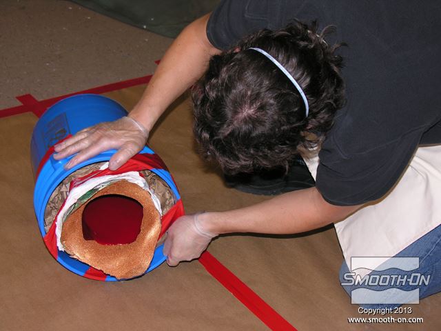 מורחים שכבה נוספת, של סיליקון מעורבב עם תוסף להברשה Thi-Vex II. יוצרים שכבה עבה על אזור התפר כדי לאפשר מקום נוח לחתוך את התבנית מבלי לפגוע בה ולעזור בנעילה במעיל התמיכה.