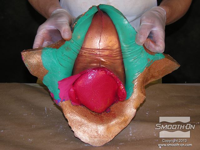 מורידים את סיליקון Body Double ע"י הפיכתו (פנים כלפי חוץ), הוא חזק וגמיש מספיק ולכן מושלם בתור חומר להעתקת גוף.