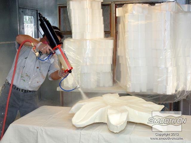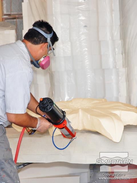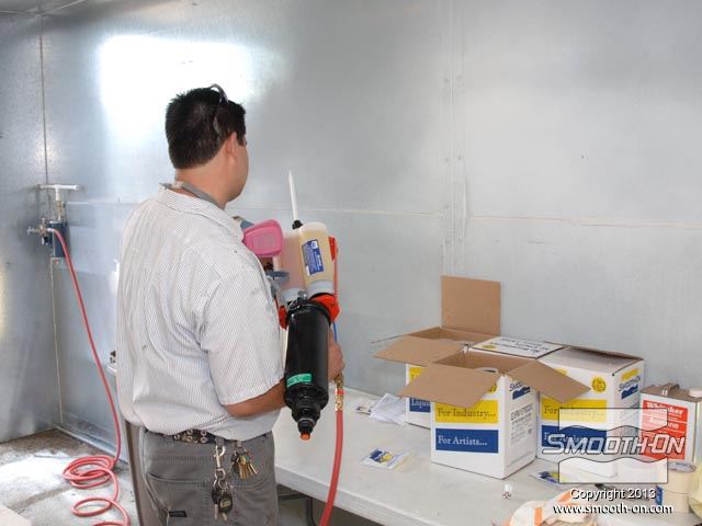 אזור עבודה לתהליך ריסוס פלסטיק לציפוי קלקר Styrocoat®.