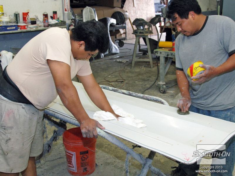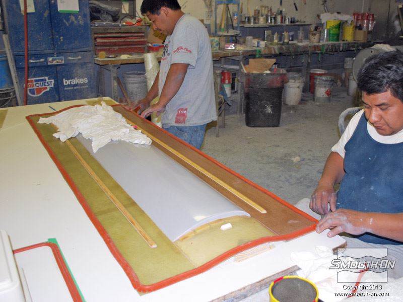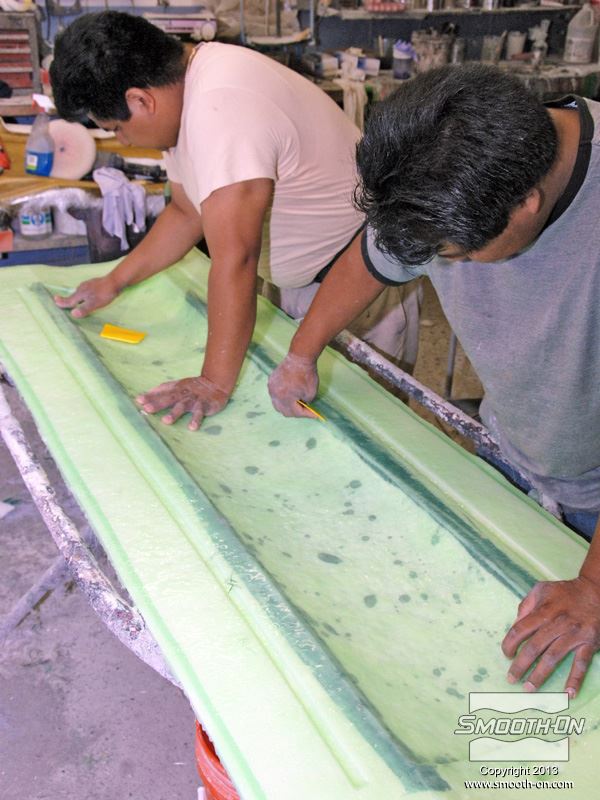 מורחים חומר הפרדה על פני התבנית. לפני הכנת החלק יש גם לנקות ולהבריק את התבנית. כך גימור החלק יהיה מבריק ביותר.