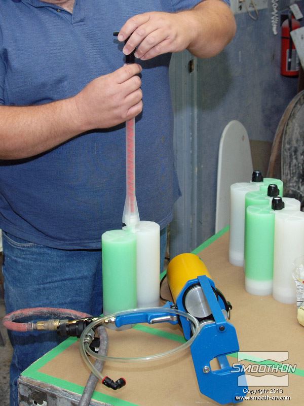 מורידים מהמיקסר הסטטי את הראש המרסס. ויוצקים את הסיליקון מסביב לתבנית כדי להכין מסגרת אטימה.