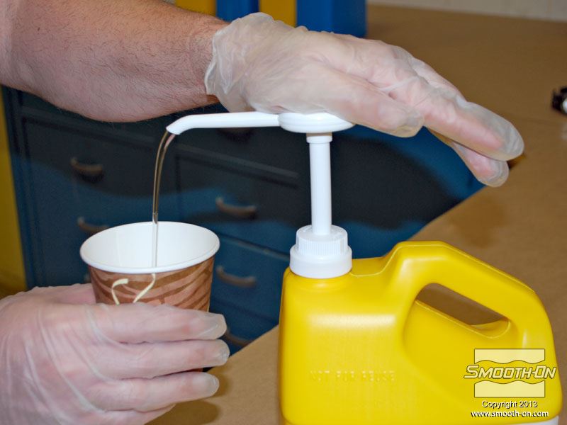 מודדים את החומרים בעזרת משאבות מכויילות מראש. לחיצה אחת על המשאבה מחלק A היא הכמות הנכונה עבור לחיצה אחת מהמשאבה של חלק B.