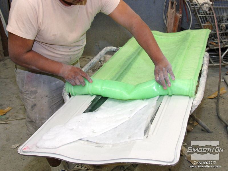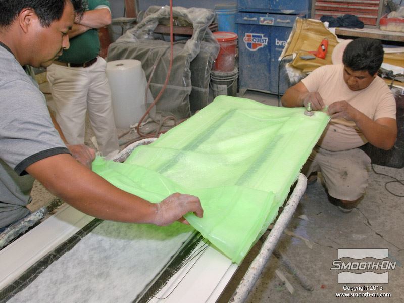 מכינים לג'לקוט תמיכה מסיבי זכוכית ספוגים בשרף אפוקסי. במקרה זה משתמשים בבד זכוכית לא ארוג.