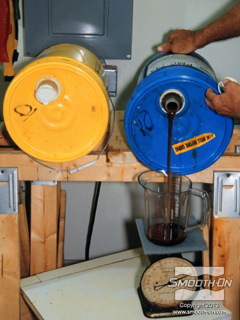 מודדים את הבסיס והמקשה של הפוליאוריתן גמיש PMC®-744 במיכל ערבוב.