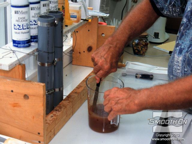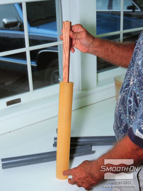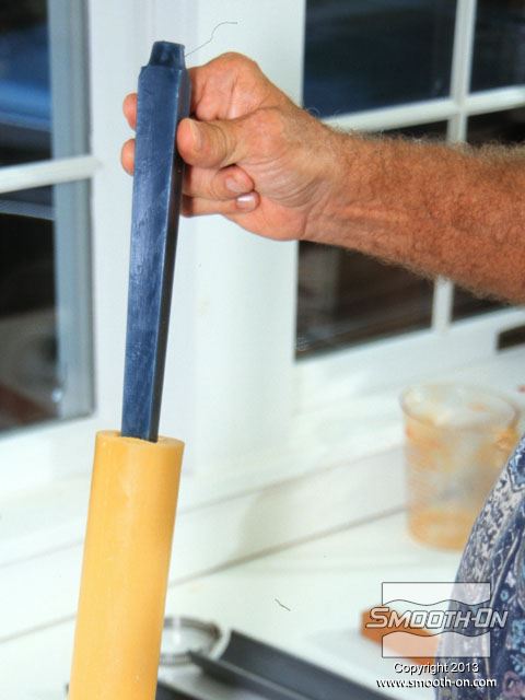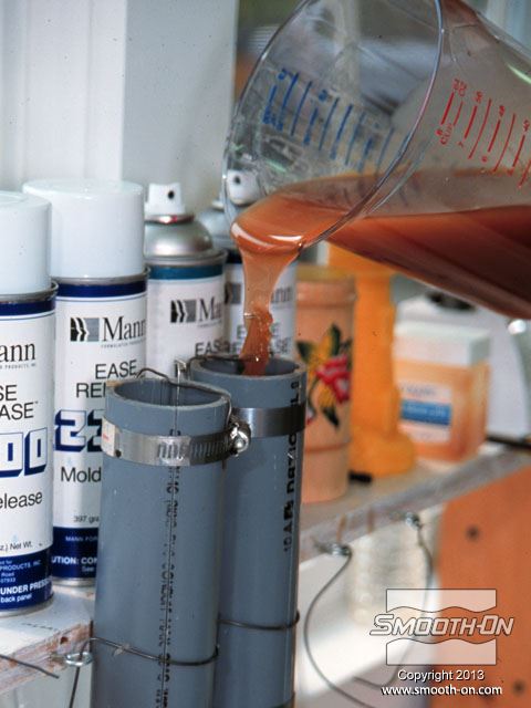 יוצקים את הפוליאוריטן PMC®-744 לתוך צינור הPVC, מסביב למודל, ומניחים לו להתמצק במשך הלילה.