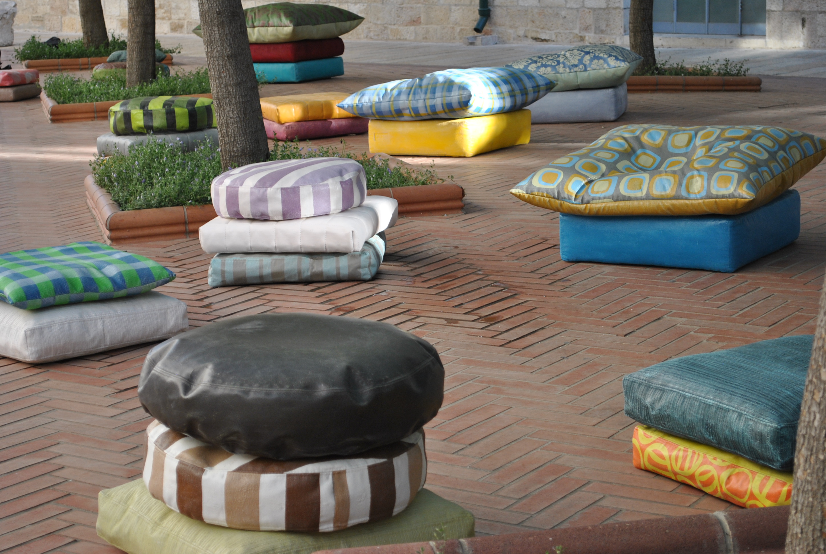 מיצג כריות מבטון בכיכר ספרא בירושלים באדיבות האמנית סמדר כרמלי