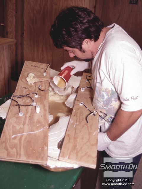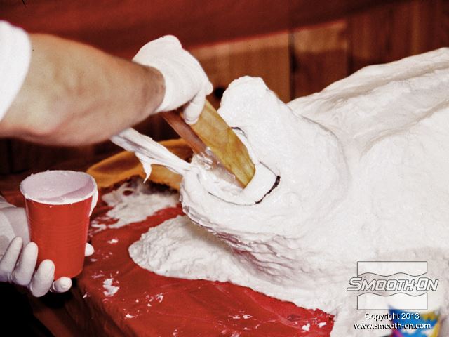 היציקה תעשה ממעטפת דקה של פוליאוריתן קשיח Smooth-Cast® 320 ולאחר מכן תמולא בעזרת קצף פוליאוריתן Foam-iT!® 5. ראשית, מודדים, מערבבים ויוצקים פוליאוריתן קשיח Smooth-Cast® 320 לתבנית.