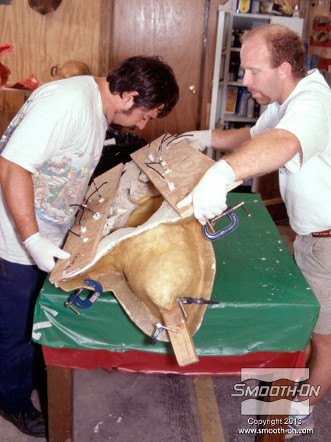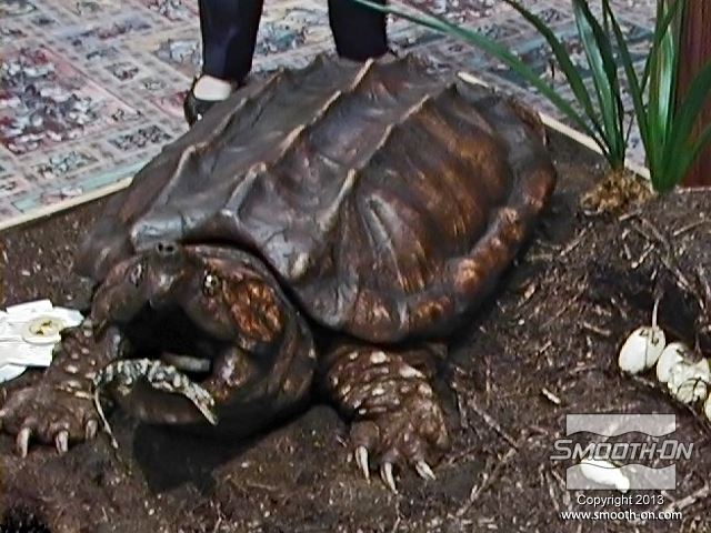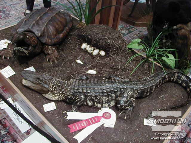 צב אליגטור (צד שמאל למעלה), ביצי התנין (מרכז) והתנין הם כולם יציקות שנעשו בעזרת חומרי חברת Smooth-On. תצוגה זו נוצרה עבור תחרות פחלוץ עולמית, ואכן זכתה בפרסים.