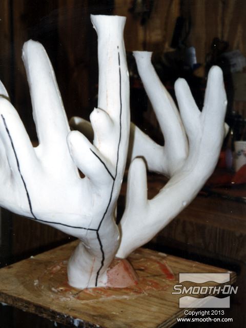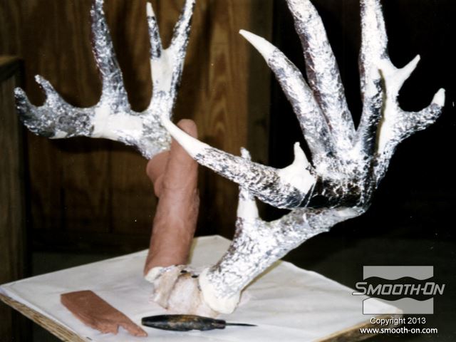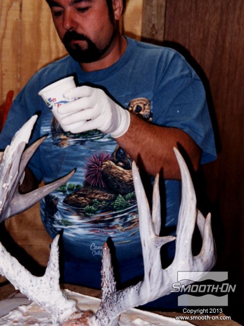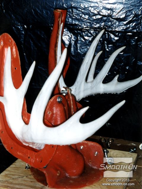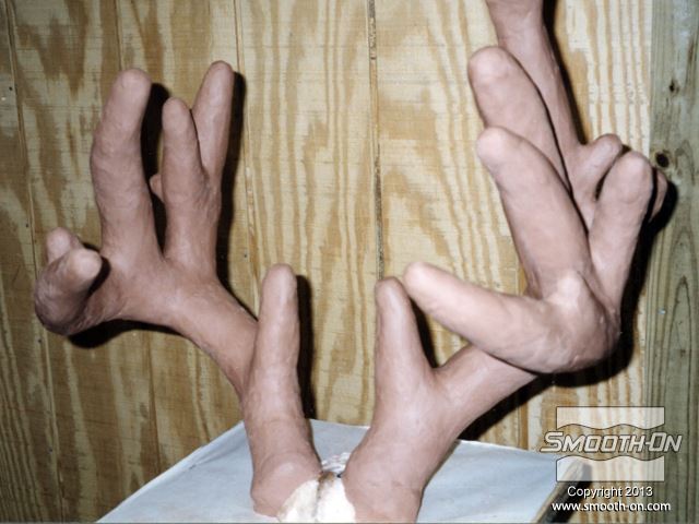 גימור - צובעים את יציקת הפוליאורתן קשיח Smooth-Cast® 320 בעזרת צבע Polytranspar וצבע Lifetone כדי להעניק לקרניים מראה מציאותי.