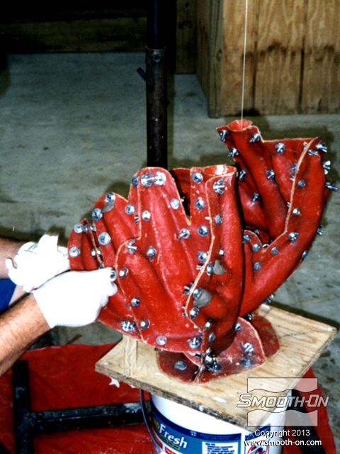 לאחר שהסיליקון Mold Max® 30 מתמצק לגמרי, מסירים את מכיל התמיכה ומסמנים בטווש קווי תפר על אזורי תבנית הסיליקון אותם צריך לחתוך.
