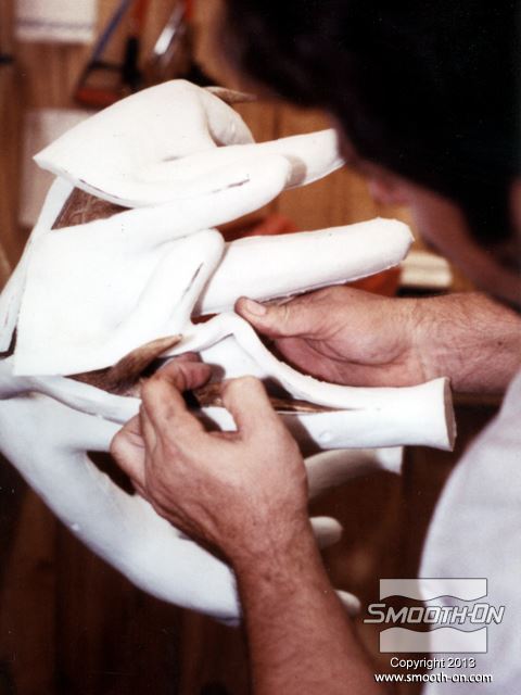 מורחים שכבה דקה של סיליקון להכנת תבנית Mold Max® 30 על הקרניים כדי לצמצם לכידה של בועות אוויר.