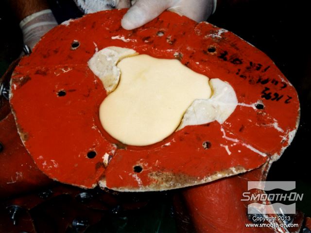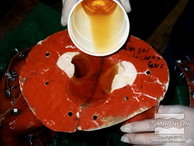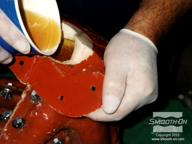 מודדים, מערבבים ויוצקים פוליאורטן קשיח Smooth-Cast® 320 לאחד מצידי הקרניים כך שהחומר יגיע עד לקצוות.