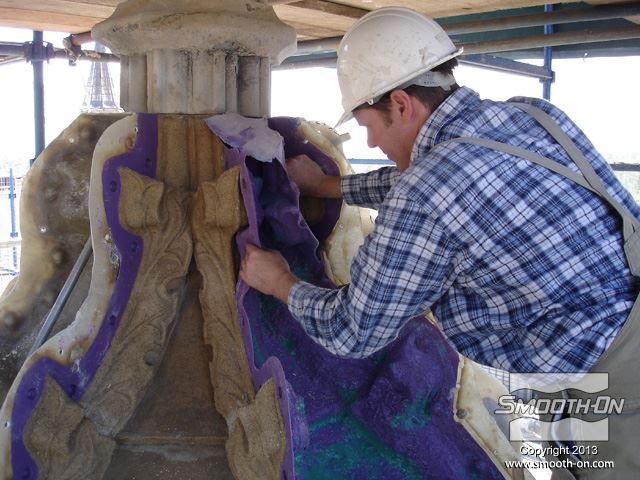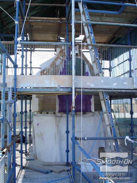 לאחר שמעיל התמיכה התמצק לגמרי, מסירים את חלקיו השונים וחושפים את תבנית הסיליקון E-Z Spray® וסיליקון למריחה Smooth-Sil® 930.