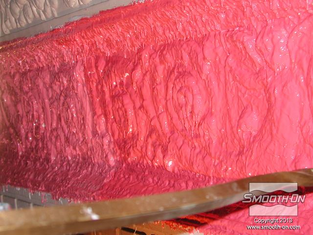 לחיצה להגדלת תמונה יום למחרת מורחים שיכבת גיבוי קשיחה (מעיל) על גבי פוליאוריטן Brush-on 40 על מנת לתת תמיכה לגומי. יום למחרת מורחים שיכבת גיבוי קשיחה (מעיל) על גבי פוליאוריטן Brush-on 40 על מנת לתת תמיכה לגומי.