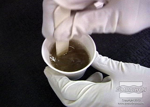 מערבבים פוליאוריטן ליציקה Smooth-Cast 325 עם אבקת מתכת - בתמונה עם ברונזה.