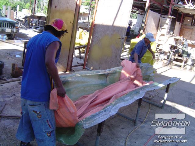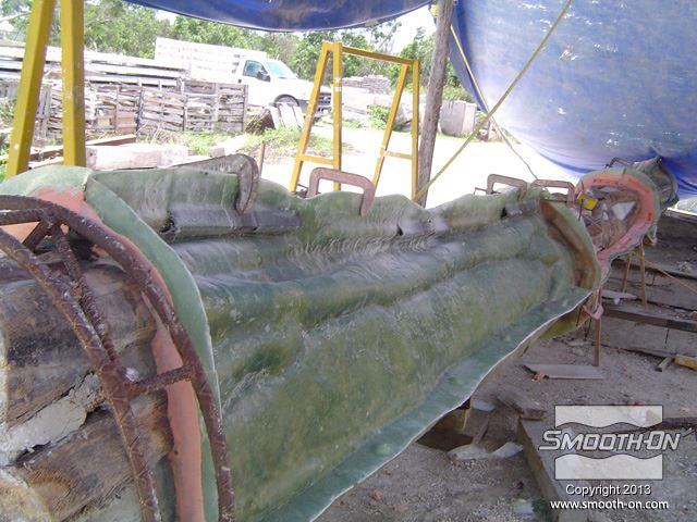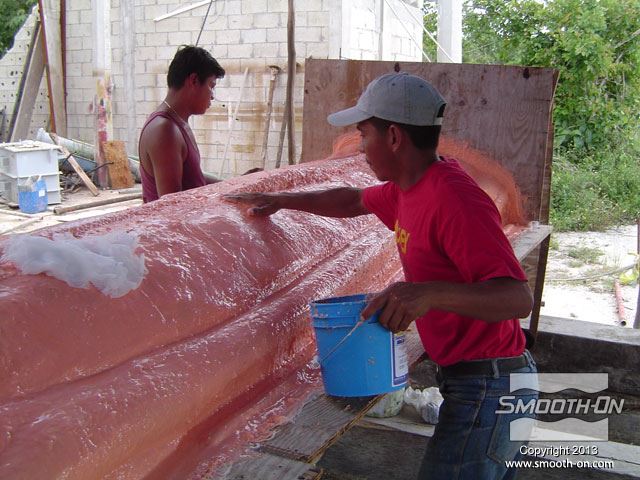 מניחים לתבנית להתקשות, ואח"כ מכינים את הגיבוי בשיכוב של אפוקסי ובדי זכוכית.