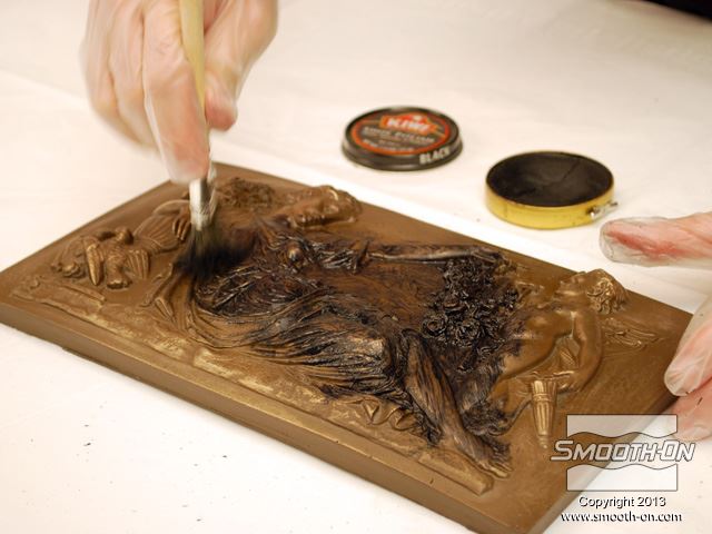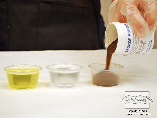 מערבבים את הפוליאוריטן קשיח ליציקה הSmooth-Cast® 325, פיגמנט שחור SO-Strong ואבקת ברונזה כדי להכין "יציקה קרה" של ברונזה. ניתן להשתמש גם בכל אבקת מתכת אחרת (המותאמת עבור 325) עבור תהליך זה.