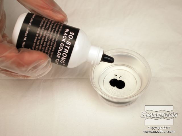 מוסיפים שתי טיפות של פיגמנט שחור למקשה B של הפוליאוריתן.
