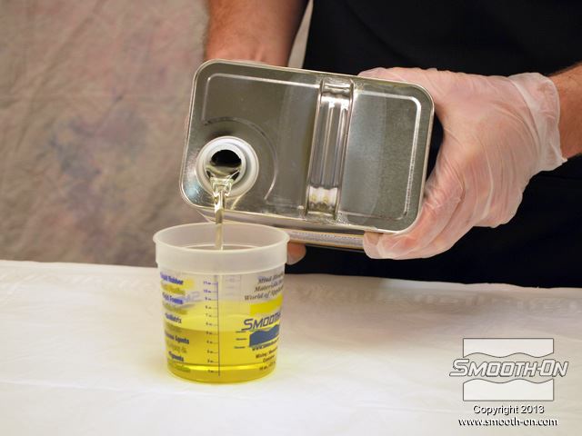 שופכים את חלק הבסיס של פוליאוריתן הSmooth-Cast® 325 למיכל הערבוב.