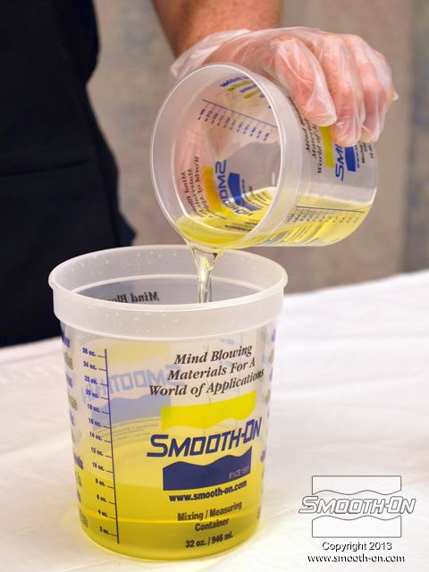 שופכים כמות שווה של מקשה הSmooth-Cast® 325 אל המיכל.