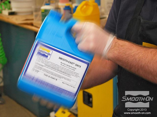 מנערים היטב את חלק המקשה של פוליאוריתן ליציקה Smooth-Cast® ONYX לפני ששופכים אותו.