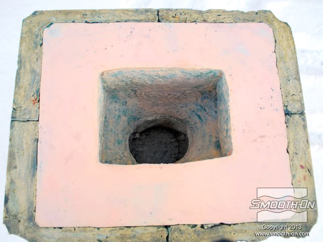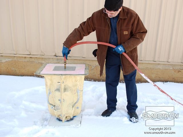 לאחר שהסיליקון Rebound® 25 התמצק לגמרי, מכינים מעיל תמיכה מפוליאוריתן למריחה Plasti-Patse. לאחר שמעיל התמיכה מתמצק, מוציאים את מודל החימר המקורי. לאחר מכן, מחזירים את תבנית הסיליקון אל מעיל התמיכה ונועלים את החצאים.