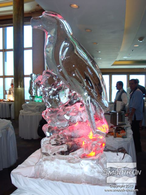 פסל הקרח מוכן. הוא מוסיף עניין ואווירה אלגנטית לכל סביבה.