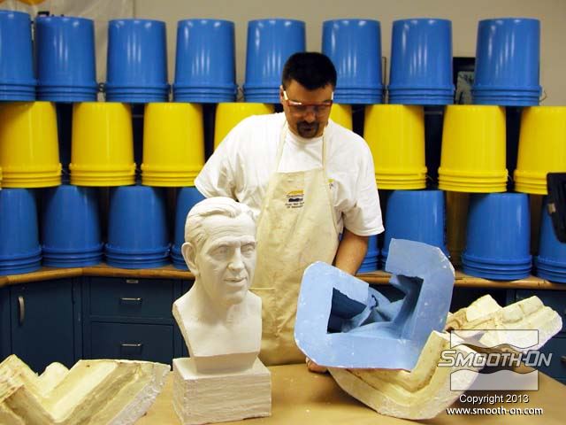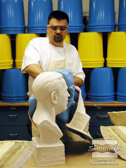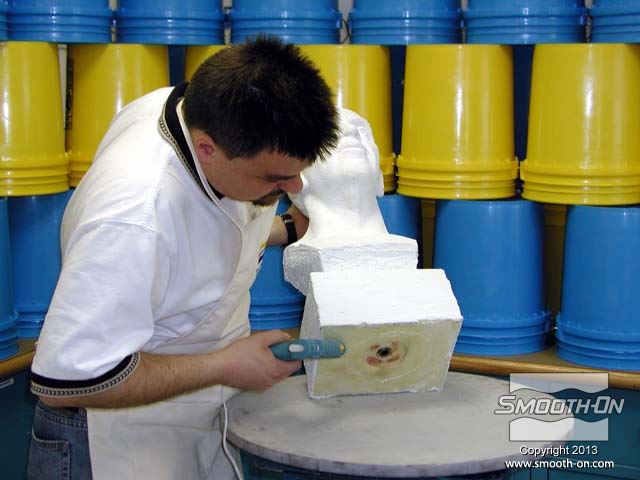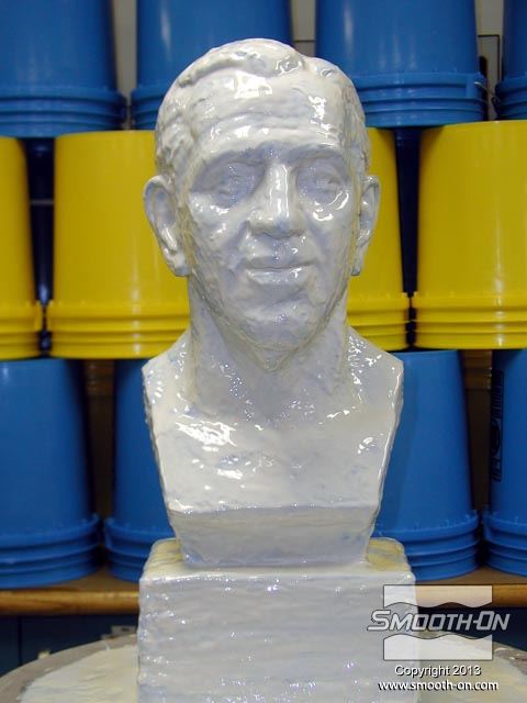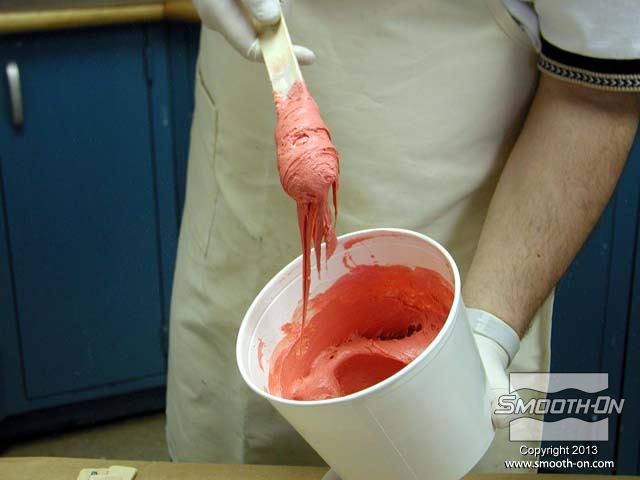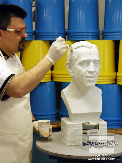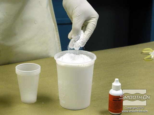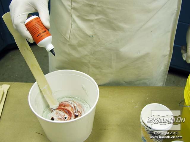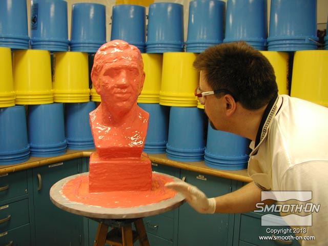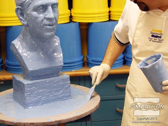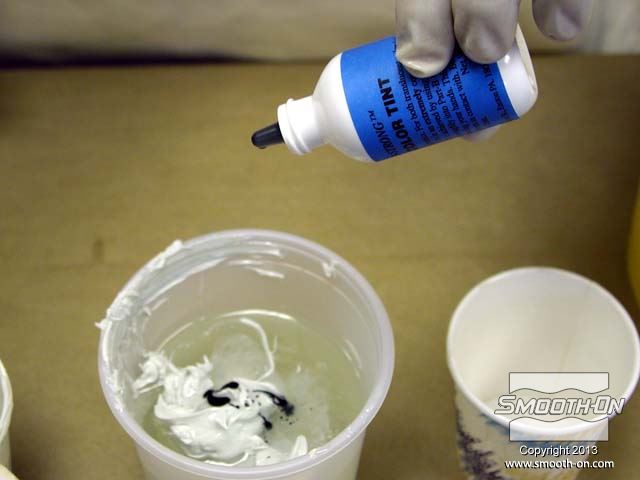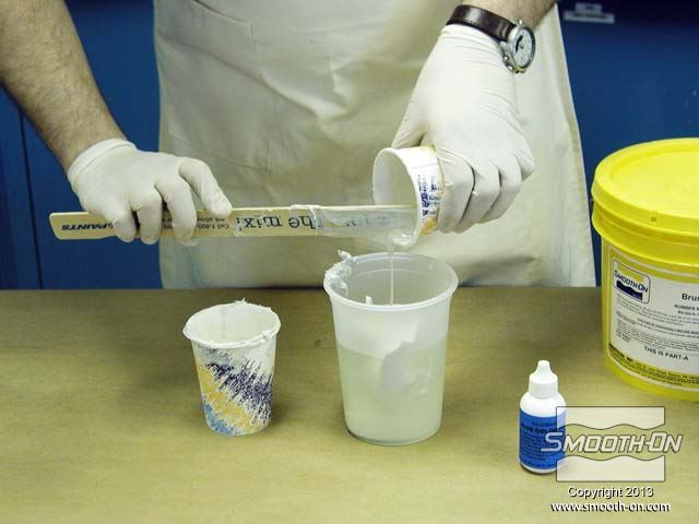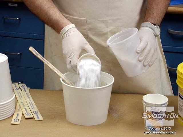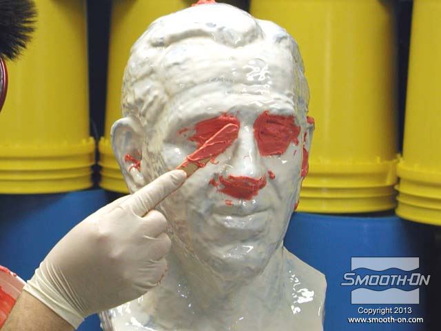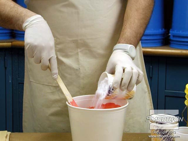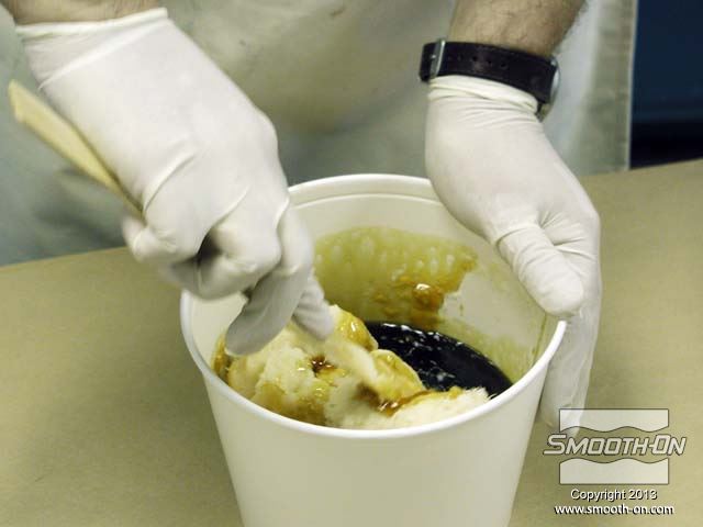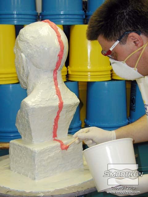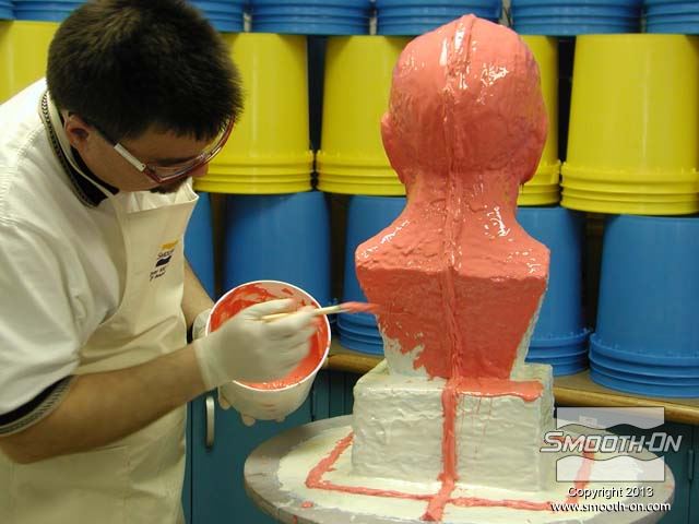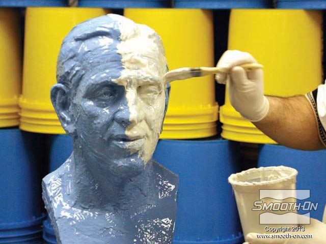 בגלל שהמודל עשוי גבס לבן ופוליאוריטן למריחה Brush-On 40 גם הוא לבן , מוסיפים פיגמנט כחול מסדרת So-Strong על מנת שיהיה ניתן יהיה לראות אם יש כיסוי מלא של שכבת הפוליאוריטן על המודל.