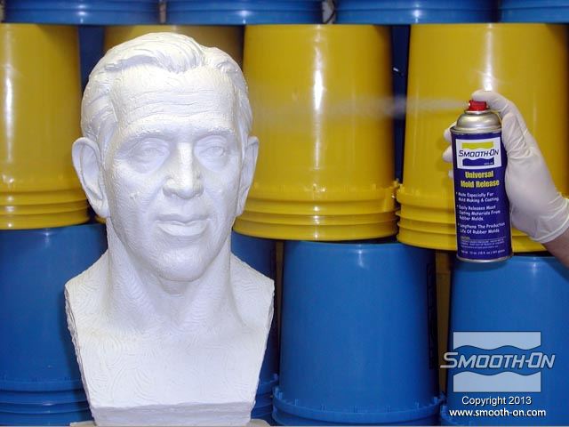 חומר הפרדה על בסיס סיליקון Universal Mold Release מיושם על פני שטח המודל ומשטח העבודה.
