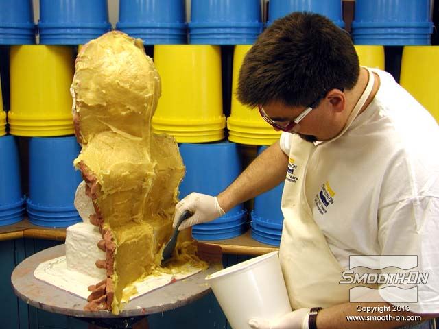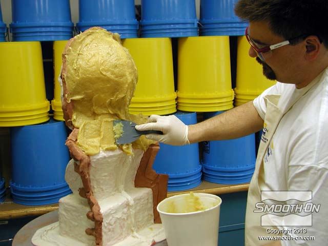 החלק האחורי של הפסל יהיה הראשון לקבל את הפוליאוריטן לגיבוי תבניות ה Plasti Paste.